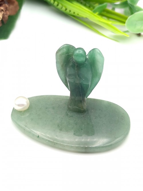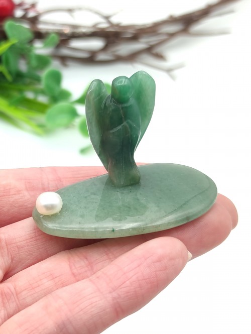 Сувенир Ангел из зеленого авантюрина с жемчугом